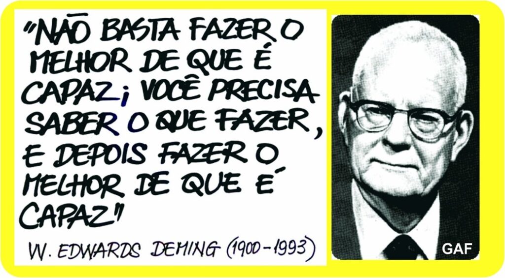 Neste desenho feito na técnica bico-de-pena realizado pelo autor deste artigo, nossos agradecimentos aos grandes mestres – Kaoru Ishikawa, J.M. Juran e Deming (in memoriam) e ao nosso ilustre colega da Academia Brasileira da Qualidade – ABQ, Prof. Vicente Falconi.